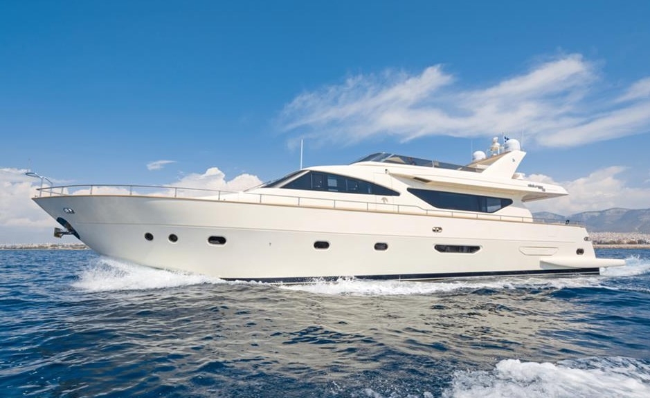 The Alalunga 78, located in Athens, Greece, is a 23.85-metre motor yacht in excellent condition. Built in Italy and delivered in 2008, this yacht features a planing hull and teak laid decks. With a beam of 5.80 metres, it is equipped with comprehensive amenities for a superior boating experience. This vessel is powered by twin Caterpillar diesel engines, which were overhauled in 2021, ensuring reliable performance.