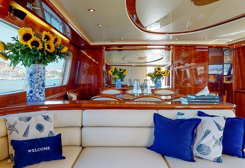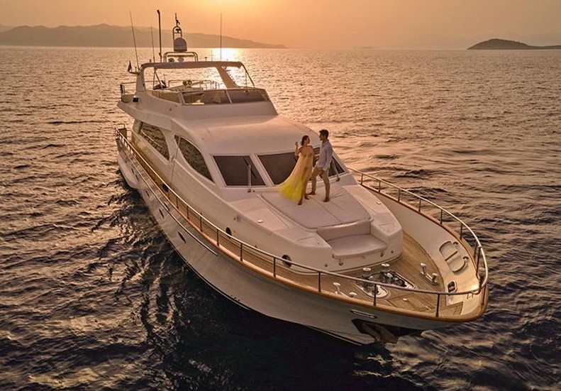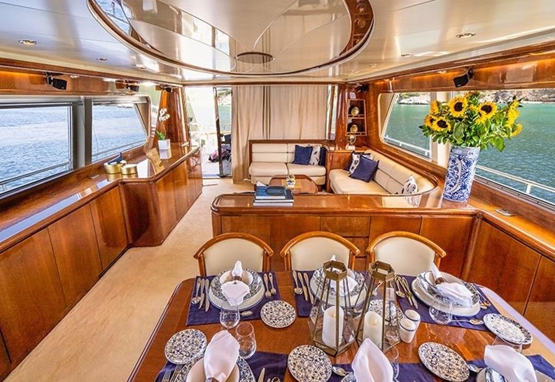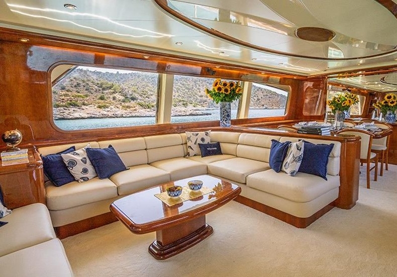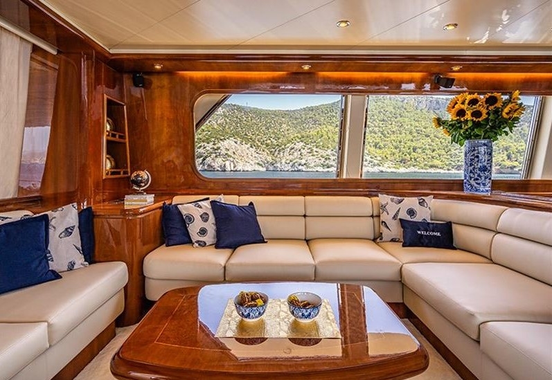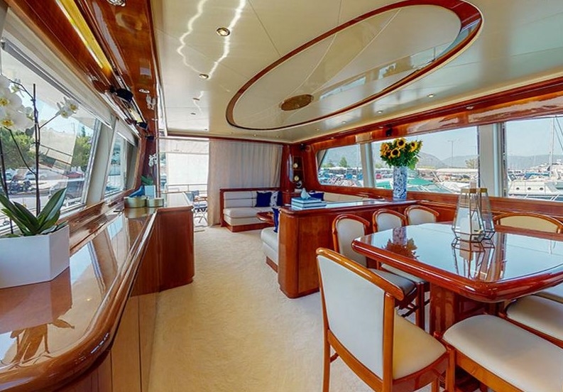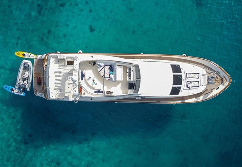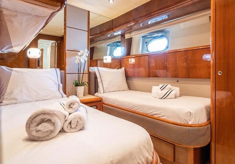 The Falcon 86, a luxurious flybridge motor yacht built in 2006 and refitted in 2021, is located in Athens, Greece. This 26.50-meter yacht, crafted in Italy, boasts a white GRP hull complemented by a teak deck and cherrywood interior. Powered by two MTU 2000HP engines, it cruises at 20 knots with a top speed of 26 knots, drawing 470 litres of fuel per hour. Accommodating 8 guests across 4 cabins and housing 5 crew members, it offers ample comfort with 4 WCs and a variety of amenities, including TV and stereo systems, a water-maker, and a 4.20m RIB with a 70HP Yamaha engine. The yacht is equipped with advanced navigation systems by Raymarine and Simrad, and two 22.5KW Onan generators, ensuring seamless sailing experiences. The vessel has a Greek flag of registry and VAT is not paid.