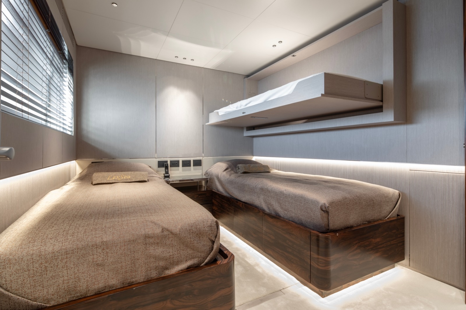 2 x GUEST CONVERTIBLE TWIN CABINS featuring convertible Twin beds, flat screen TV and 1 x pullman bed. En-suite bath with shower, single sink, toilet.